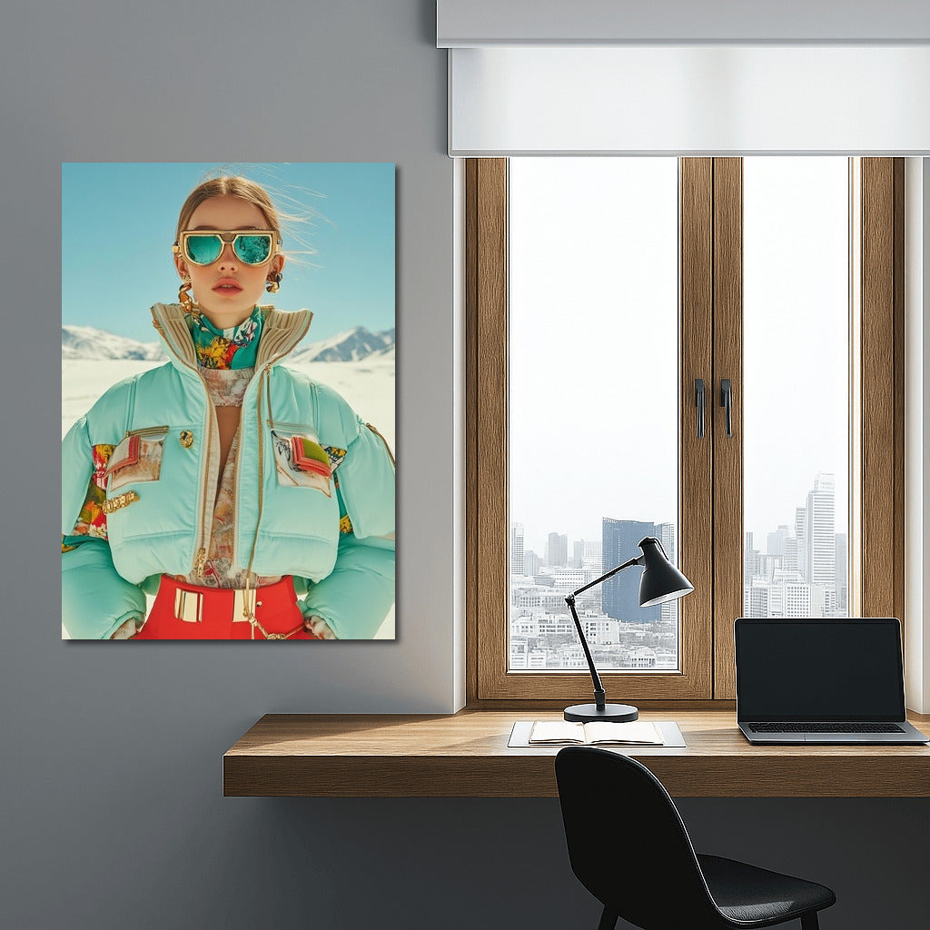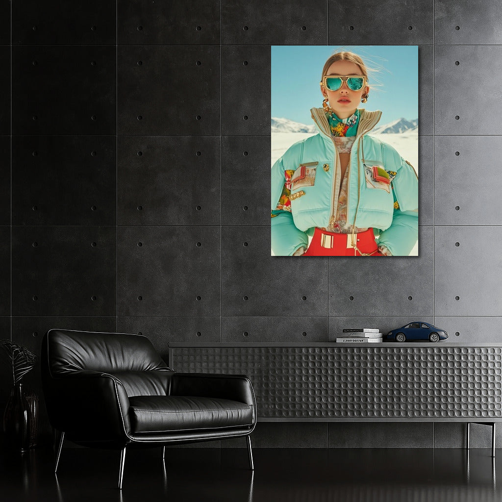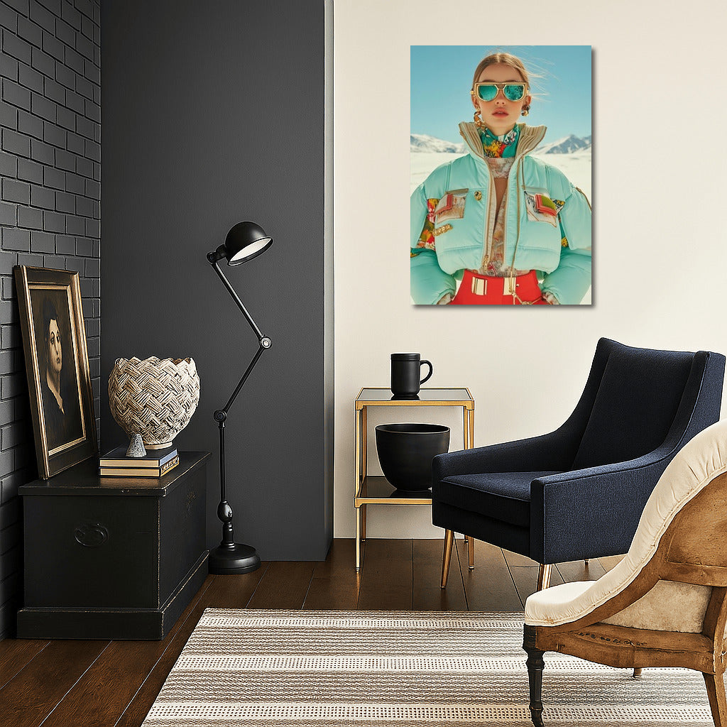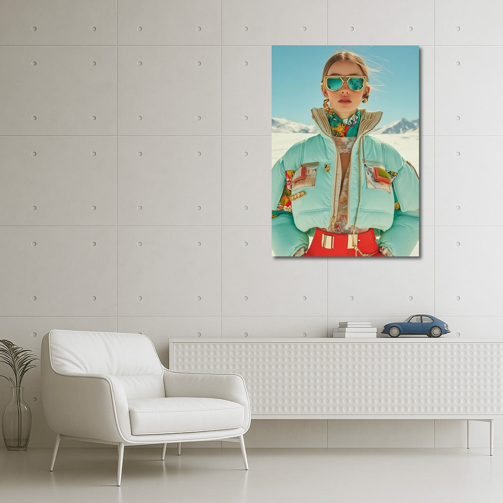Stylish poster: bright winter, fashion and sunglasses. Wall art will embody freshness and trend in your interior. See more from the collection: Wall Art with Women