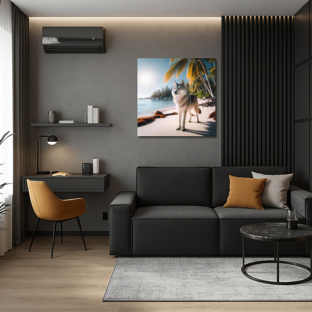 Poster Wolf in tropical paradise 4: harmony of nature and wild beauty. Wall art for true connoisseurs of adventure. See more from the collection: Animals Art