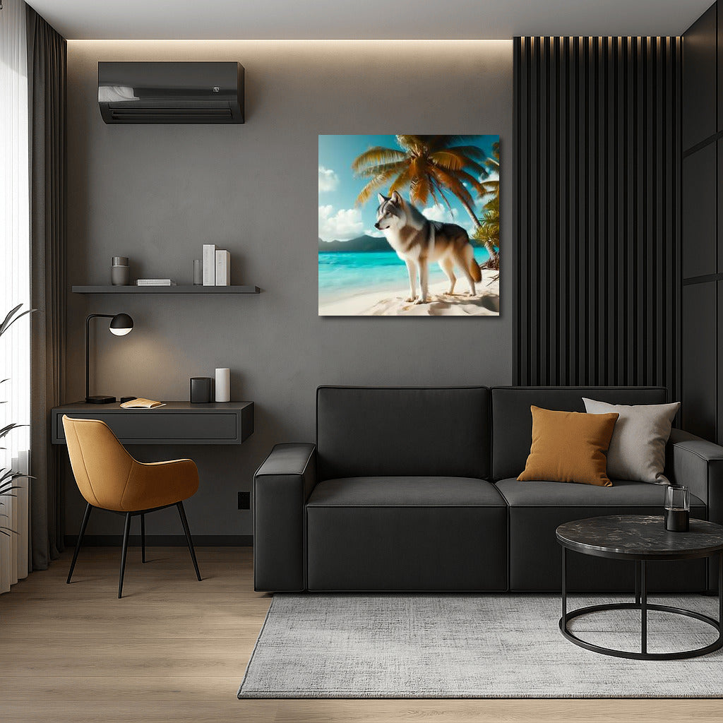 Wolf on tropical beach is a breathtaking wall art. Feel the harmony of nature in every corner of this painting. See more from the collection: Animals Art