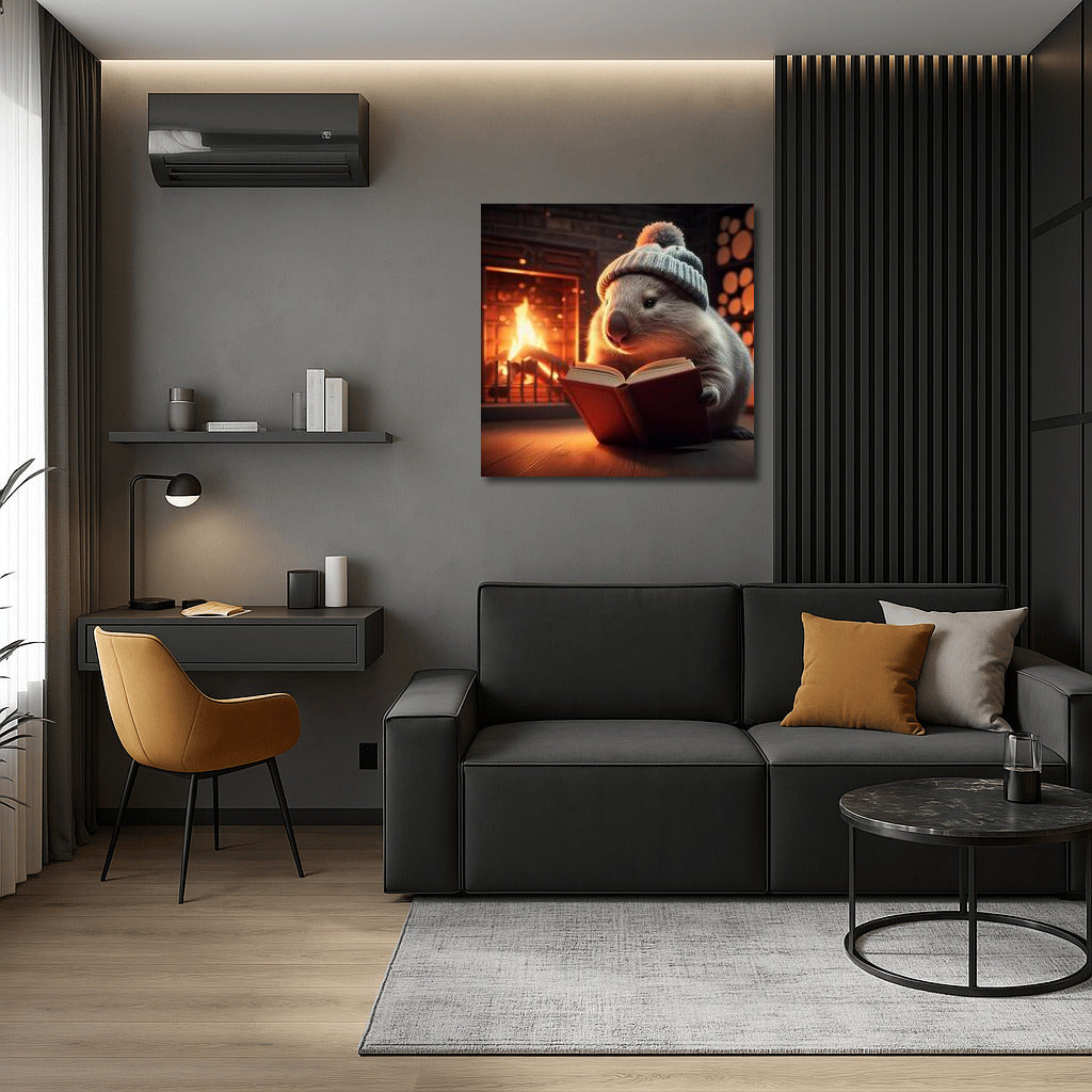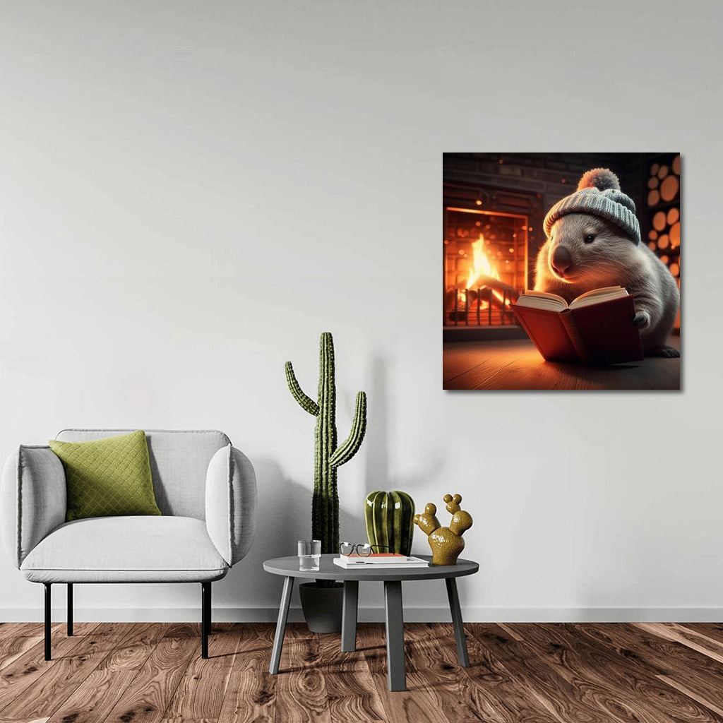 Wombat in a Hat: Cozy Reading by the Fireplace Wall Art