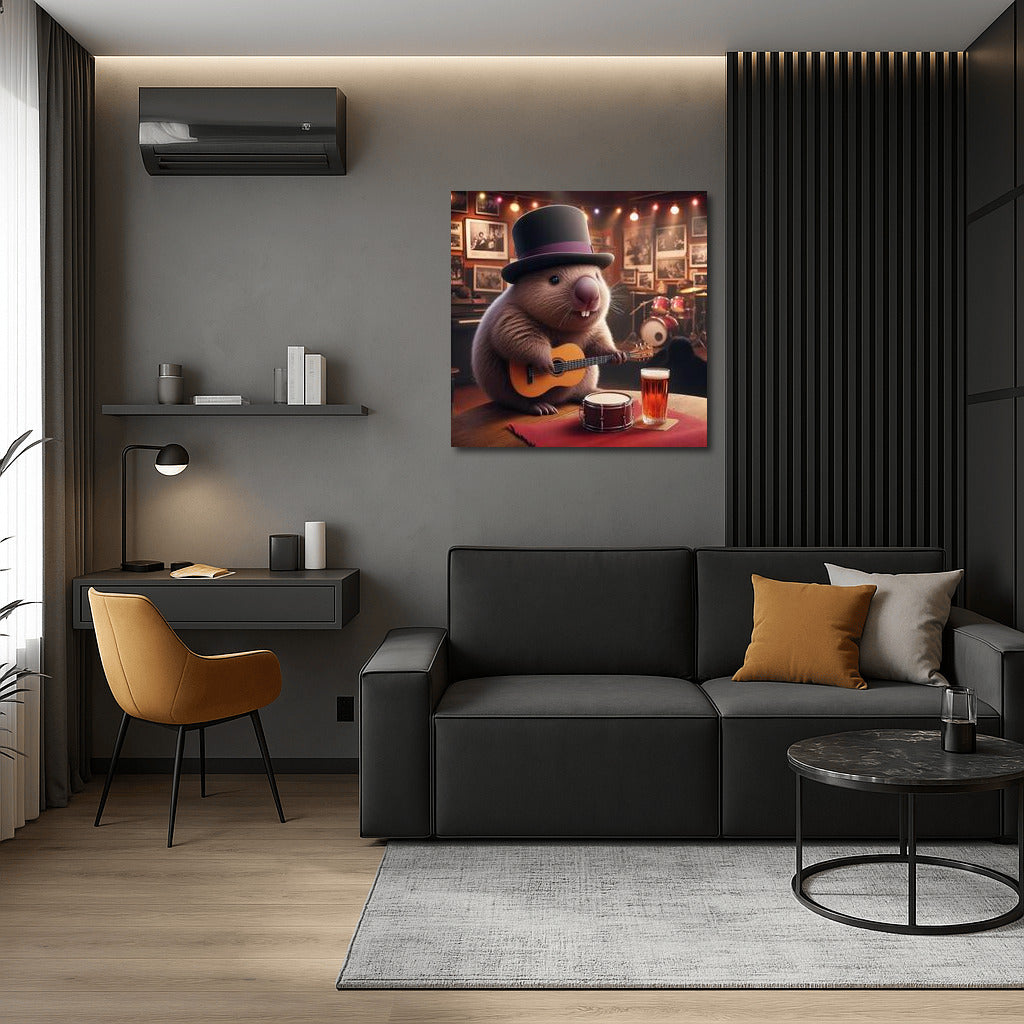 Wombat with Guitar: The Way to the Concert at the Music Club Wall Art