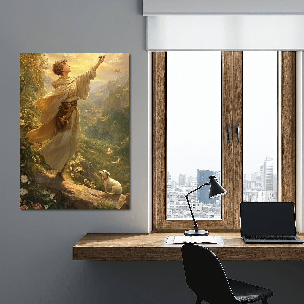 Open a window to a fantasy world! This poster with a magical creature and his faithful friend will inspire you by adding magic to your walls. See more from the collection: Mixed Wall Art