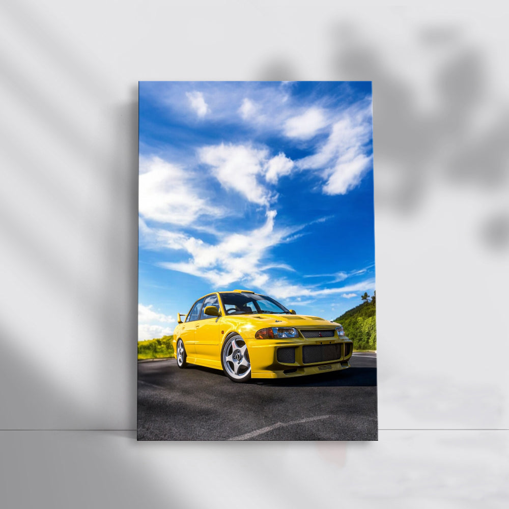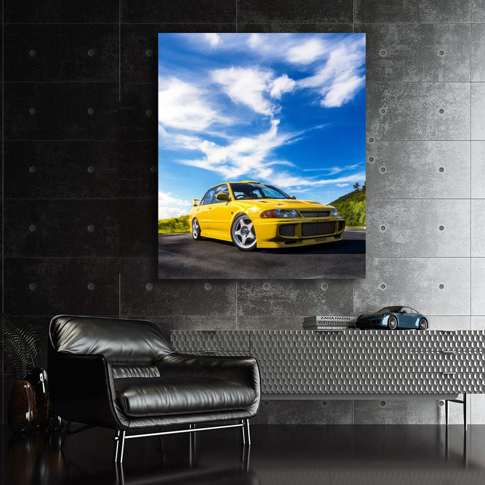 Yellow Mitsubishi Lancer: Power and Style in Nature Wall Art