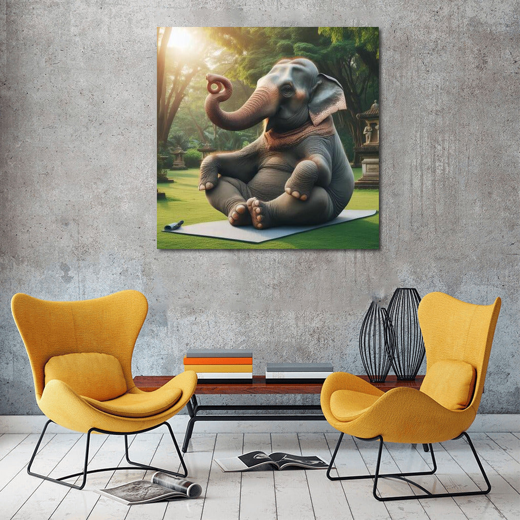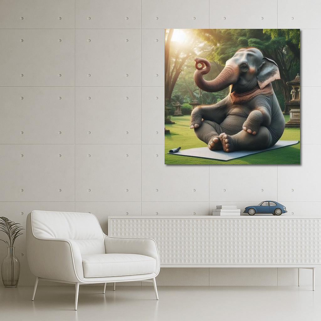 Yoga in the Park: Graceful Elephant on the Mat Wall Art