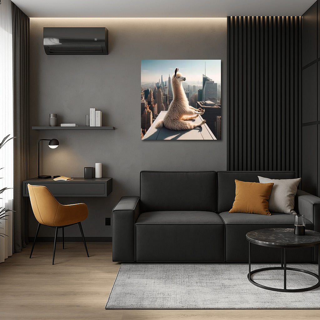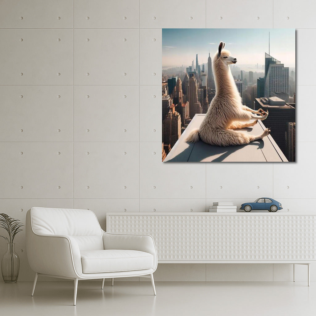 Yoga Lama on the Roof of a Skyscraper: Relax with Humor Wall Art