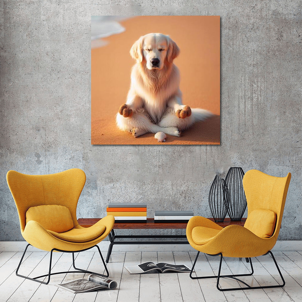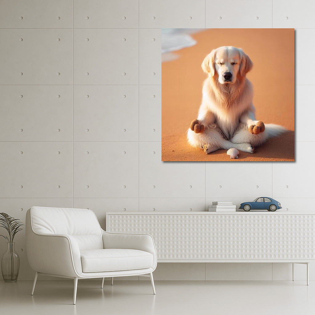 Yoga on the Sand: Lotus Dog by the Sea Wall Art