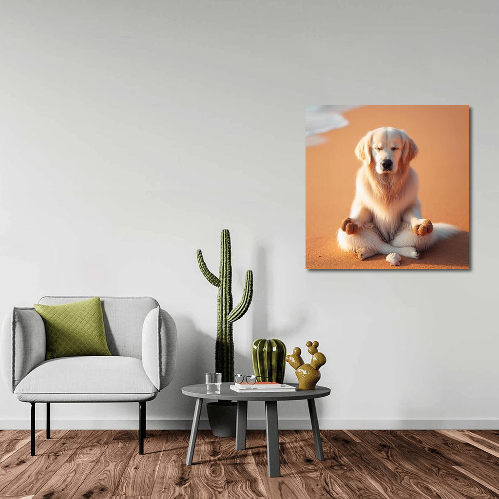 A dog in a lotus position against the backdrop of the sea is a meditative poster that turns any space into a zone of calm and harmony. See more from the collection: Animals Art