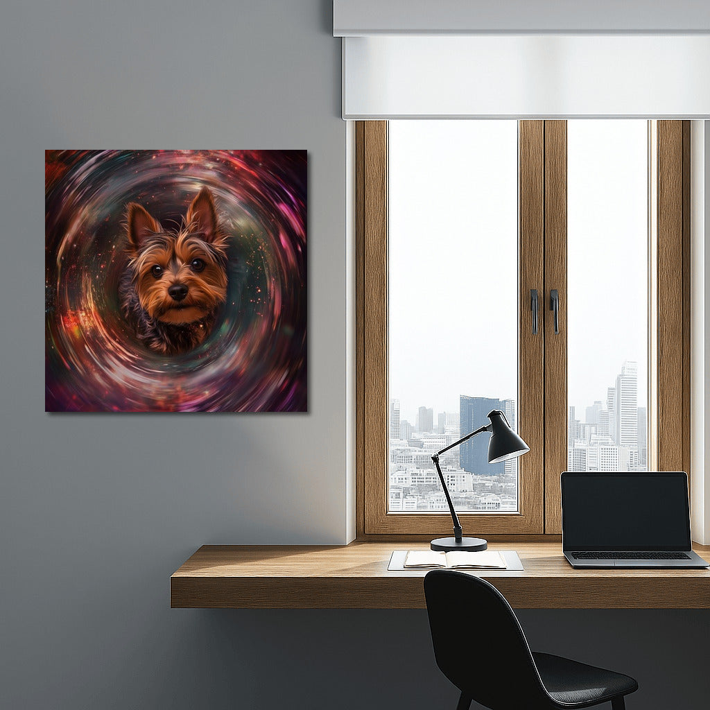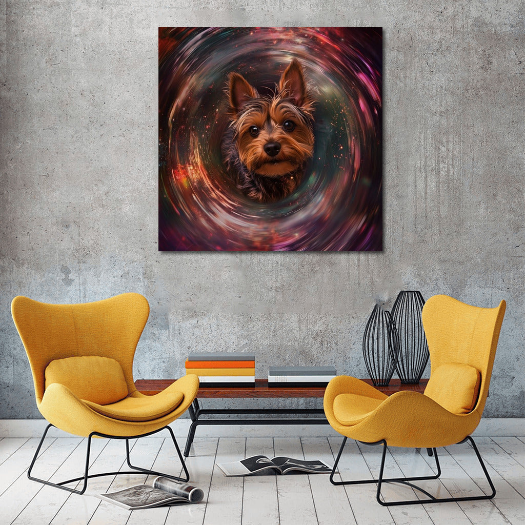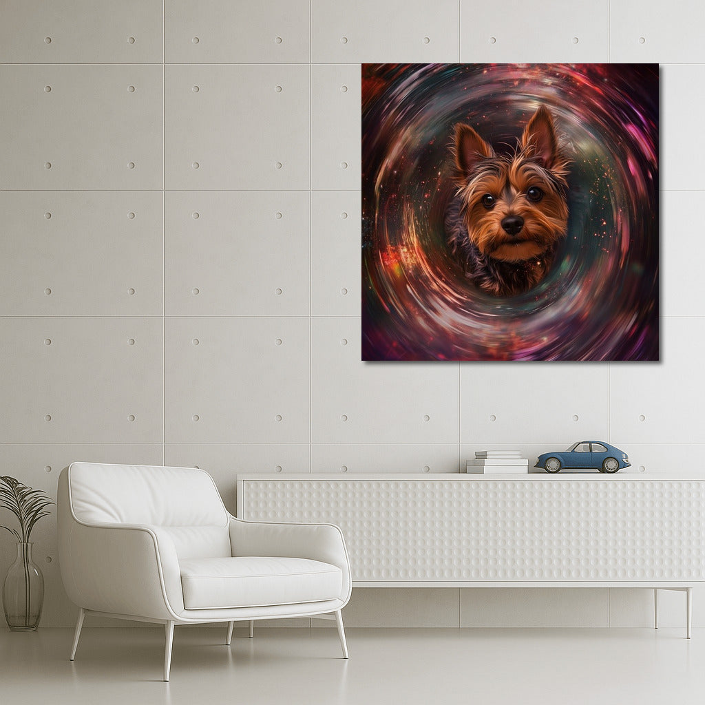 A mysterious cosmic vortex and a cute Yorkshire terrier. Art that brings the interior to life with a spirit of fantasy and charm. See more from the collection: Animals Art