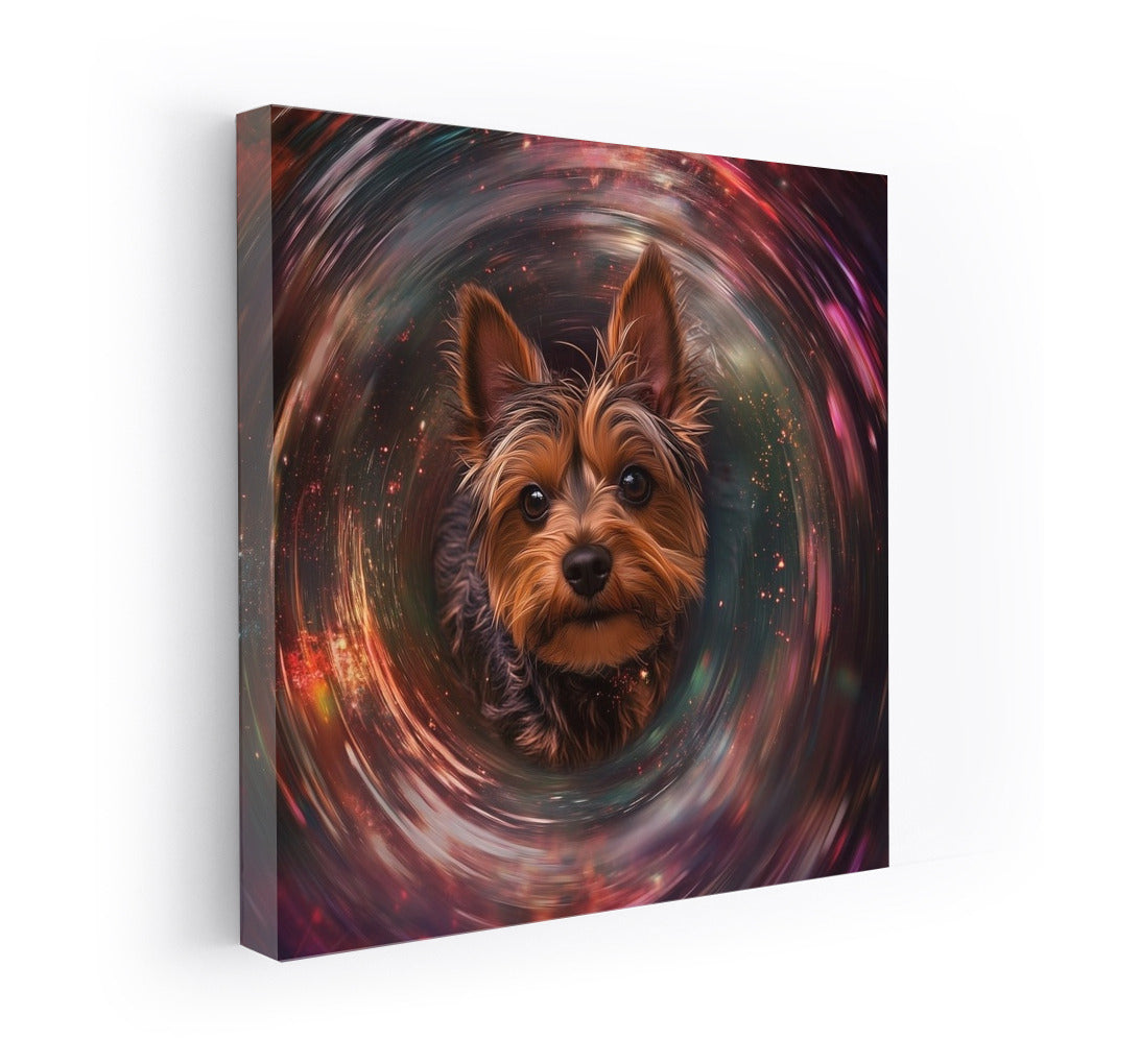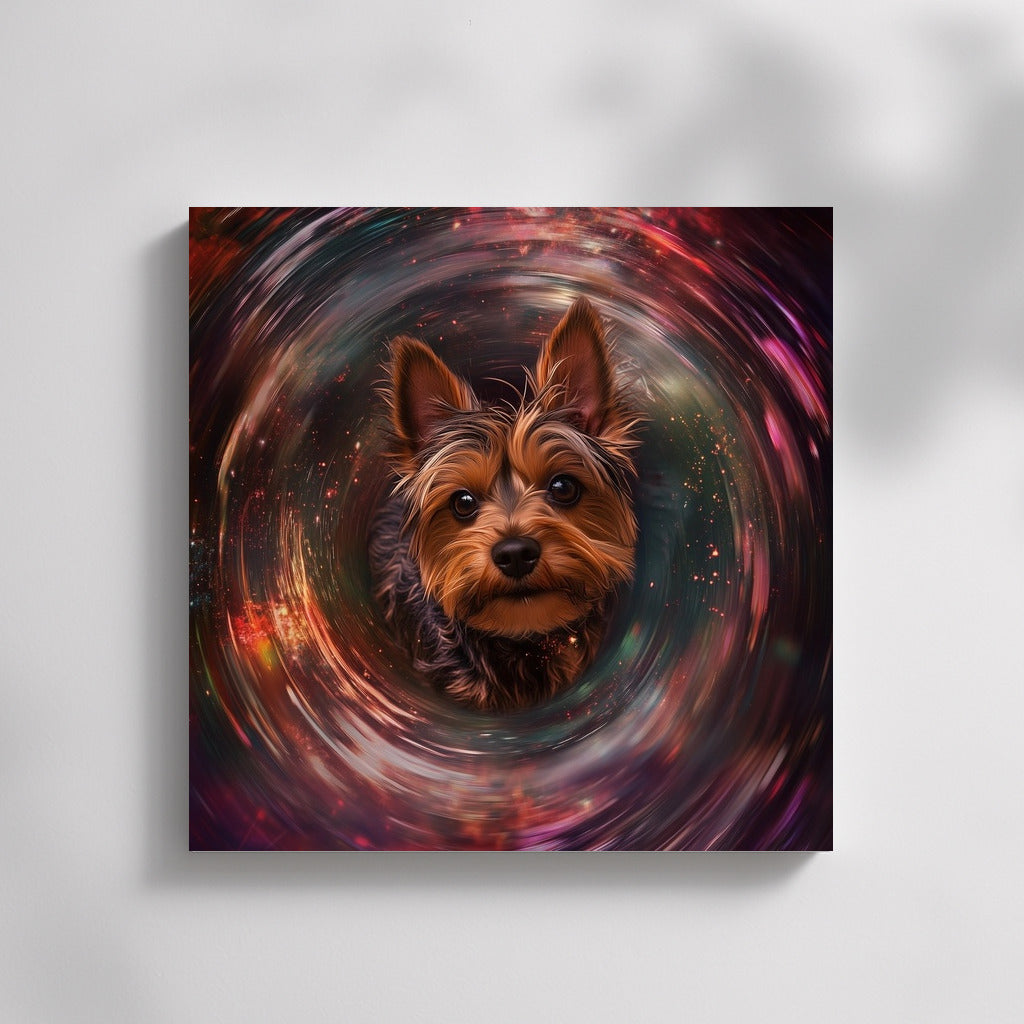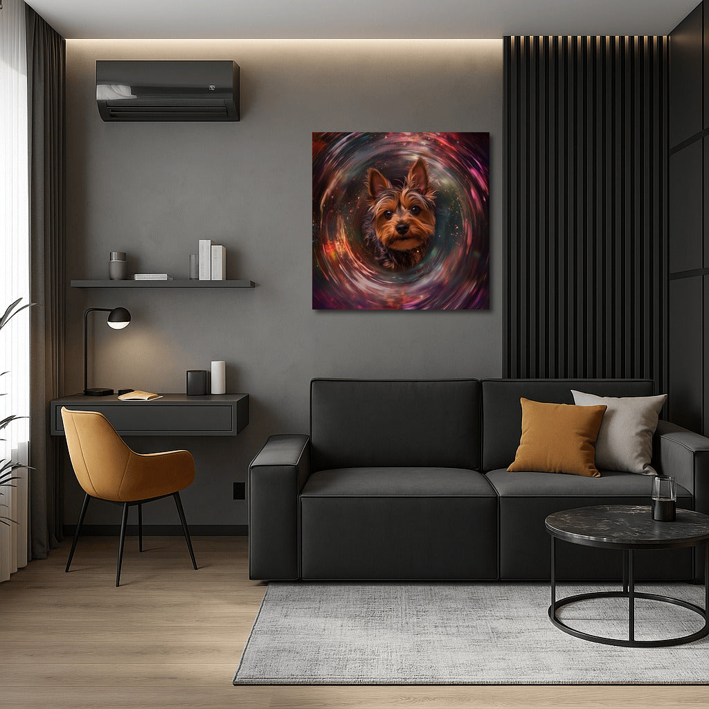 A mysterious cosmic vortex and a cute Yorkshire terrier. Art that brings the interior to life with a spirit of fantasy and charm. See more from the collection: Animals Art