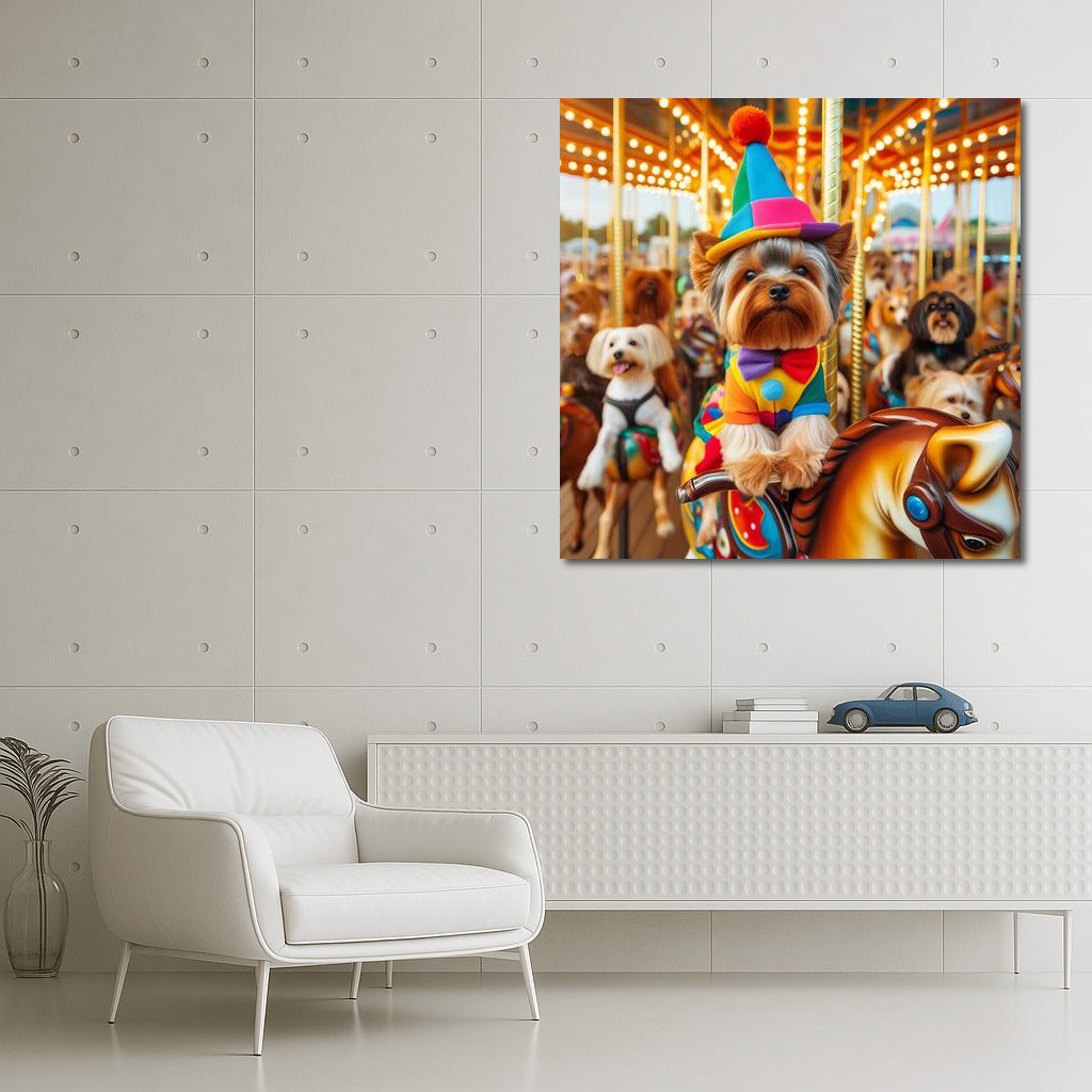 Cute Yorkshire Terrier at Carnival - a bright poster that will add sparkle and joy to any space. Dream wall art! See more from the collection: Animals Art