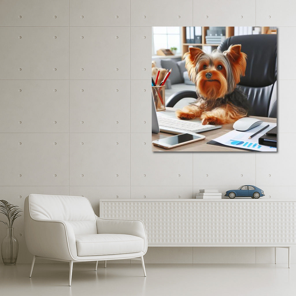 Yorkshire Terrier at the Computer: Office Fluffy in Action Wall Art