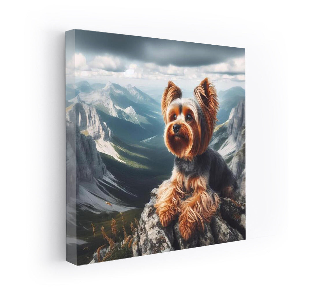 Yorkshire Terrier conquers peaks and enjoys the view. The perfect poster for adventure and nature lovers! See more from the collection: Animals Art
