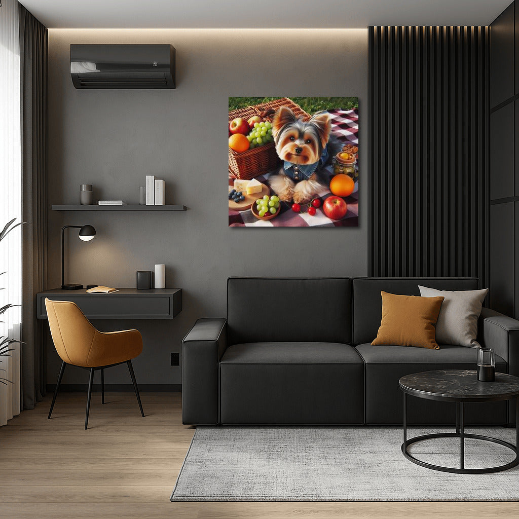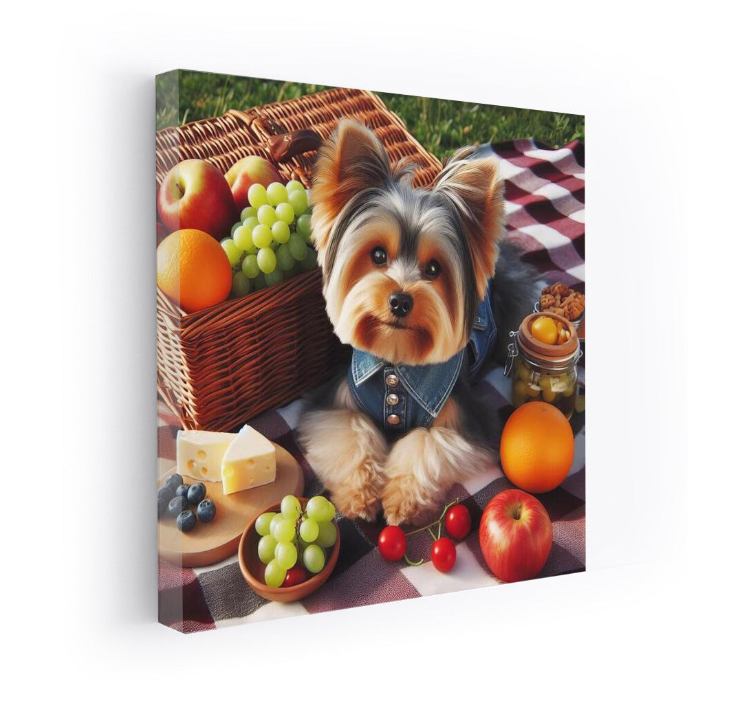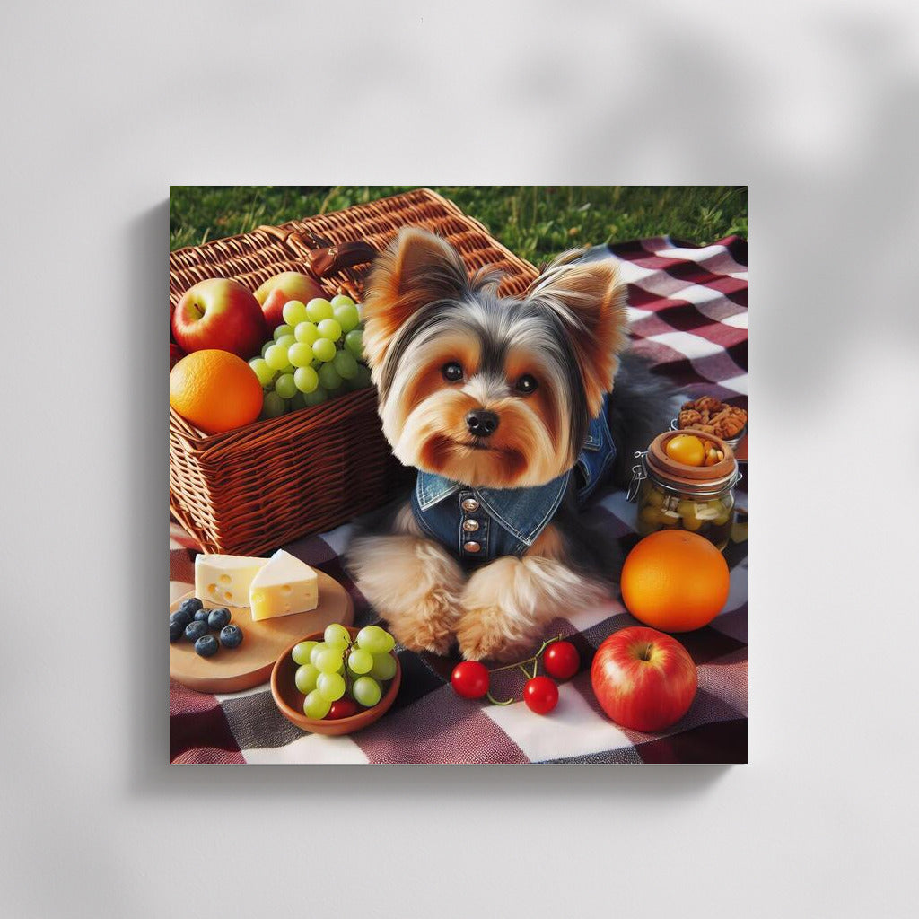 Yorkshire Terrier Picnic: Fruit, Cheese and Fun on a Checkered Blanket Wall Art